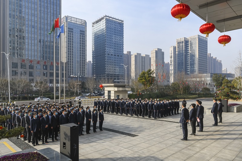 2月18日,公司在调度中心办公楼前举行升旗仪式暨2019—2021年度郑州市平安建设基层创建示范单位揭牌仪式。